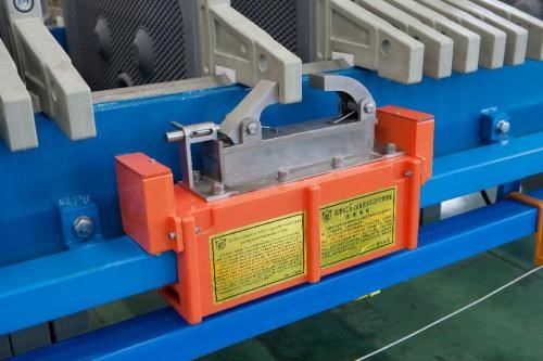 廂式壓濾機(jī)一般有頭尾兩個支座,以承受整臺機(jī)器的重量。尾端(止推板端)和進(jìn)料管相連接,尾端的支承座用螺栓固定在基礎(chǔ)上。頭端(壓緊裝置端)與尾端相距較遠(yuǎn),兩者之間由兩根橫梁相連接。大型的自動壓濾機(jī)的橫梁長度約為11-14m,每側(cè)橫梁中間設(shè)有2個支撐腿。